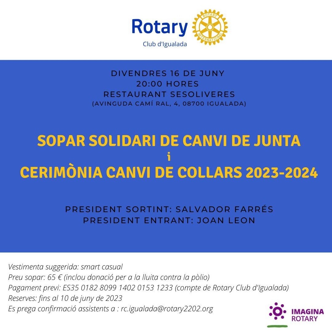 CENA SOLIDARIA DE CAMBIO DE JUNTA Y CERIMONIA DE CAMBIO DE COLLARES 2023-2024