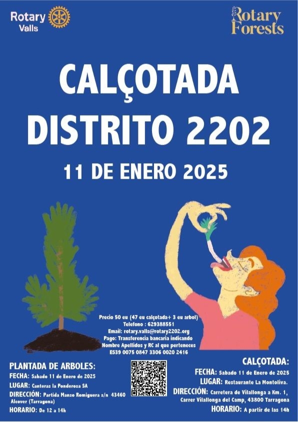 ¡Estamos encantados de invitarte a la Calçotada Rotaria 2025 del Club Rotary de Valls! Este año, además de disfrutar de una deliciosa calçotada, haremos algo especial: ¡plantaremos un árbol juntos para contribuir a un futuro más verde!