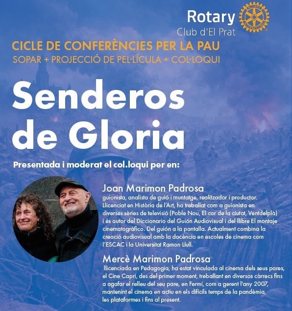 Dentro del Ciclo de la Paz, el Rotary Club de El Prat presenta la proyección de la película Senderos de gloria, una de las obras más significativas del cine antibelicista.
