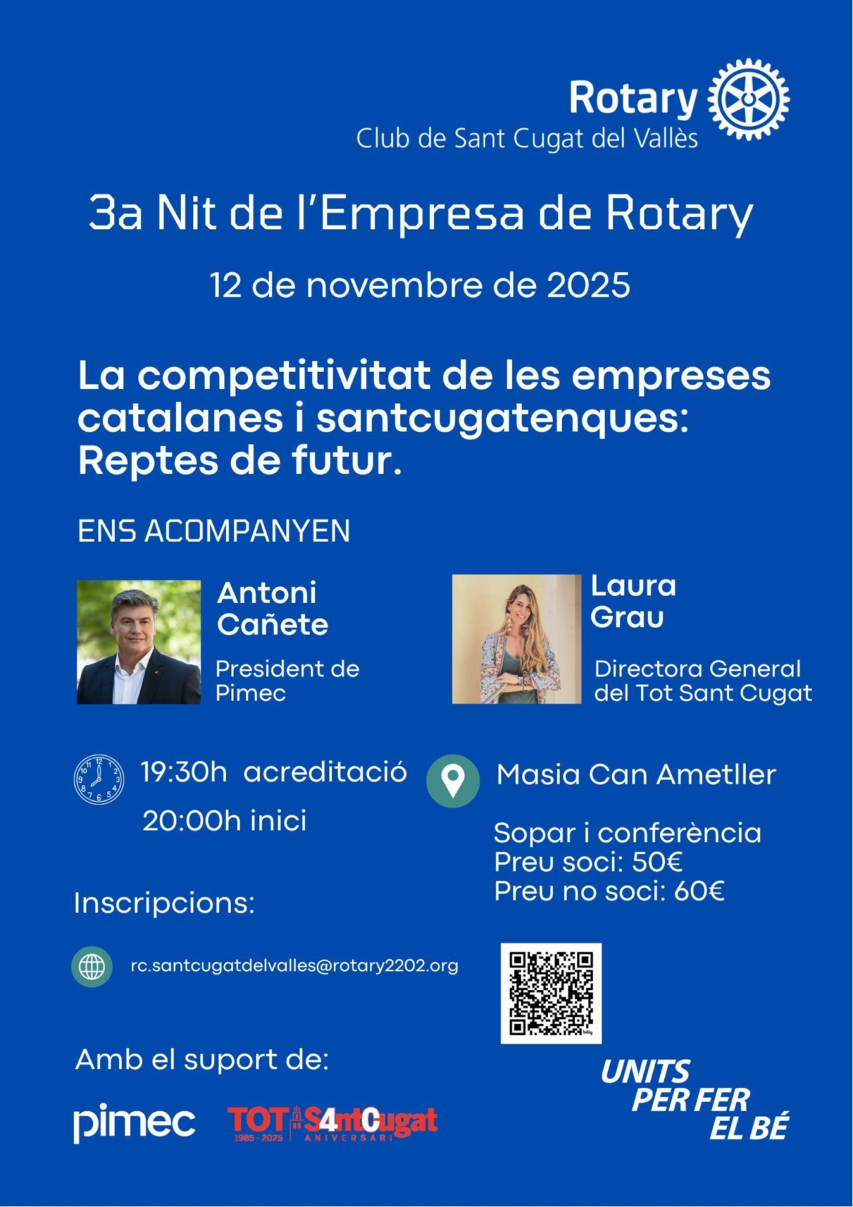 🟡 El debat serà conduït per l’Eduard Contijoch, membre del Rotary Club Sant Cugat, i promet ser un espai de diàleg enriquidor per a empresaris, professionals i entitats del territori.