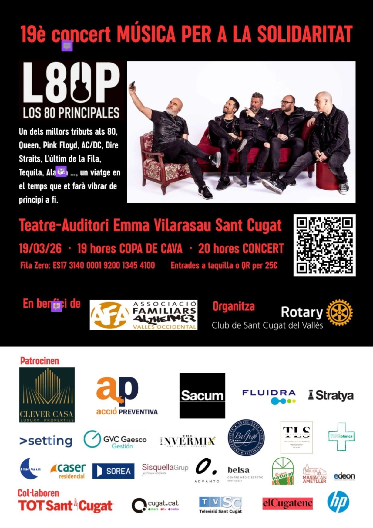 El 19 de març de 2026, a les 20h, Teatre-Auditori Emma Vilarasau, 19è concert Música per a la Solidaritat
